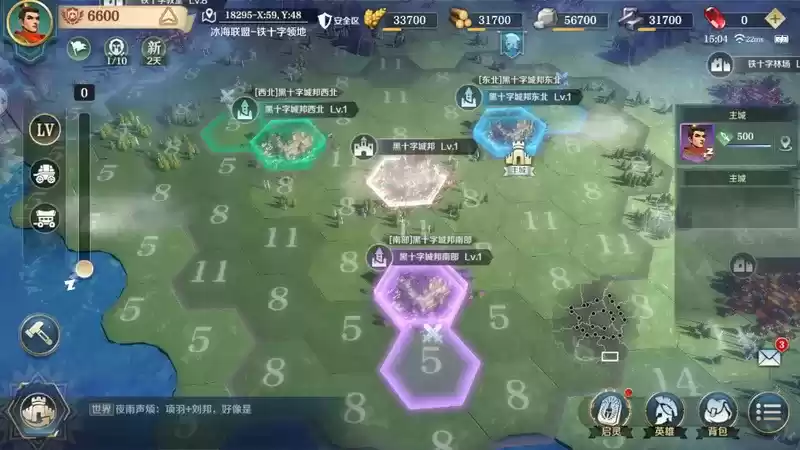 在开服后城邦战阶段中部城邦(图中为黑十字城)被叛军占领,在中部城邦领土区块范围内(图中为灰黑色半透明涵盖的格子)以及玩家领地会刷新叛军。