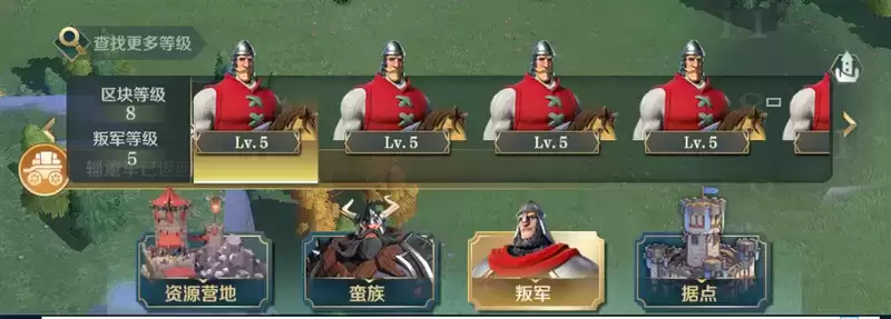 ②第三天城邦战结束,即中部城邦被玩家收复后,小股叛军会出现在玩家领地,世界地图上所有叛军消失。