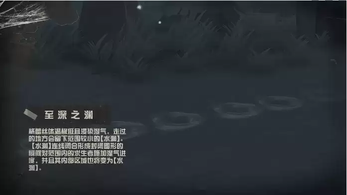 至深之渊:由于渔女的体温不高,当渔女路过的地方会在一定时间内留下水,这些水会对玩家们造成百分比的湿气效果。