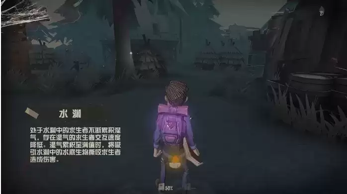 如果玩家们在水中不走的话会一直增加湿气,一秒就会增加百分之十,当玩家们身上有湿气的时候会降低窗户以及板子的使用速度,还会减少密码的开启速度,当湿气满了以后会被生物撕咬一口,形成一次伤害,当玩家们受到湿气造成的伤害以后不会继续叠加。
