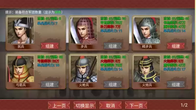 玩家们在组建军团的时候需要安排一名将领,然后选择相关的兵种才能够成立兵团。