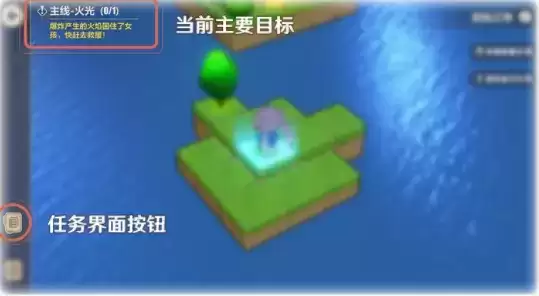 在区域探险中,当前的主要目标将显示在界面的左上角。已接取的主线与支线任务将在任务界面中展示。