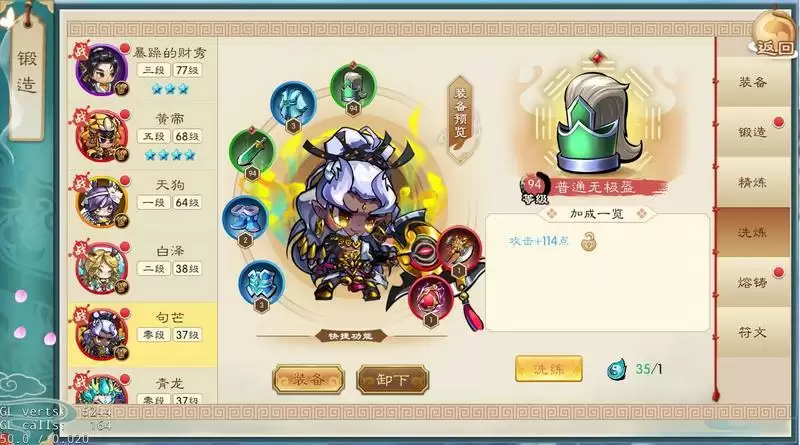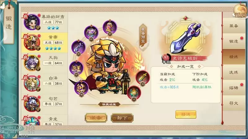 4. 装备精炼,可以通过该系统,来“吃掉”低等级或者无用的装备,来提高装备精炼等级。