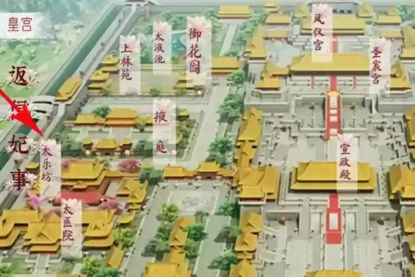 第一步、首先打开深宫曲游戏,离开寝殿进入太乐坊,如下图所示: