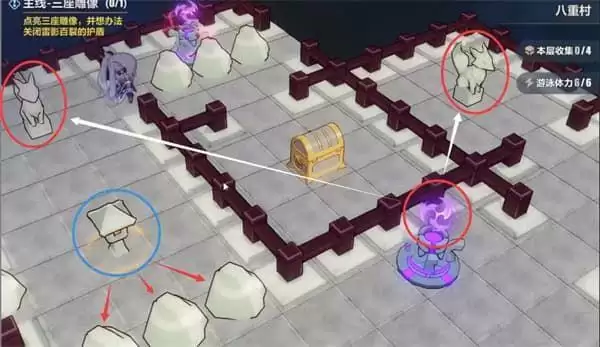 在经过剧情引导后,我们的主线是用雷元素点亮三座神像,第一座神像在教学中我们就会点亮。