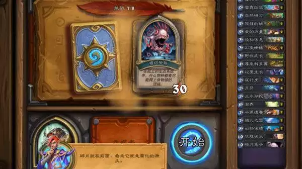 英雄技能:四选一,选布鲁坎都输了(因为两点伤害太低了,完全解不掉任何一只鱼人),于是换了个减少法术牌3费的(为了超凡)