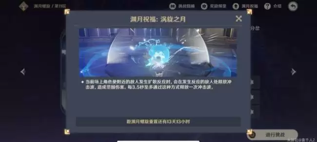本期渊月祝福:“漩涡之月”。扩散反应会释放冲击波,CD3.5秒。