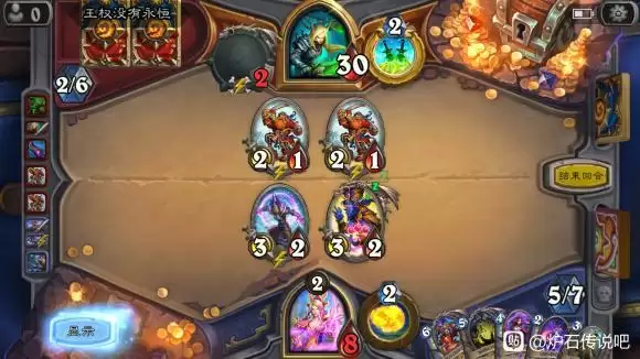 起手先把第一张加5甲的换了,加快后面牌的上手。一费跳费。运气好对方空过,运气差他下石头。