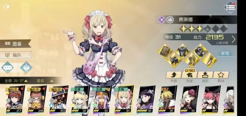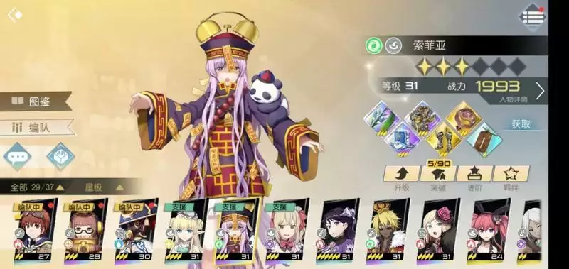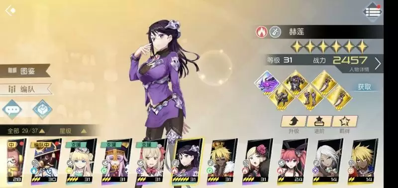 打原作剧情可以白嫖一个这个,挺好用的一个三星辅助,出场带一个范围伤害,被动几率魅惑和增加25%治疗量,和法师艾丽可以说是最佳拍档,建议养一个。