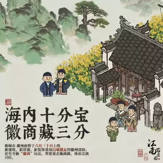 3、徽州府将会给玩家带来全新的风格、特产以及建筑,并且还会上线徽商玩法。