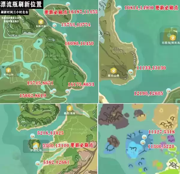 下面图示是漂流瓶的刷新位置,时间为三小时左右。