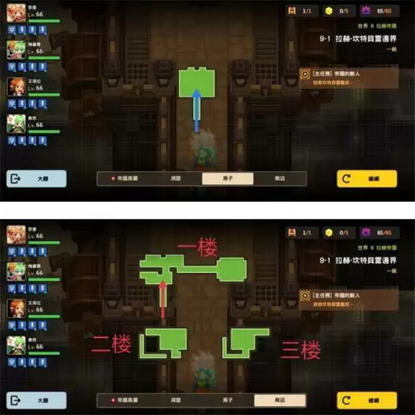 1:9-1关卡小地图(同颜色箭头出入口对应)