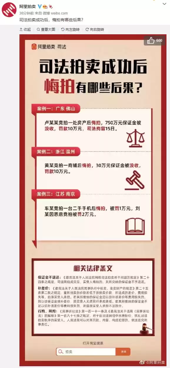 这里需要说明的是,根据《中华人民共和国民事诉讼法》第一百一十一条及《最高人民法院关于适用〈中华人民共和国民事诉讼法〉的解释》第一百八十七条之规定,对于在司法网拍中恶意抬价,扰乱司法拍卖秩序的买受人,人民法院可以对其罚款、拘留,构成犯罪的,依法追究刑事责任。而在此次事件中,对“青眼白龙 游戏王 纪念卡牌”抬价的行为,法院方面会作何行动,目前尚不得而知。