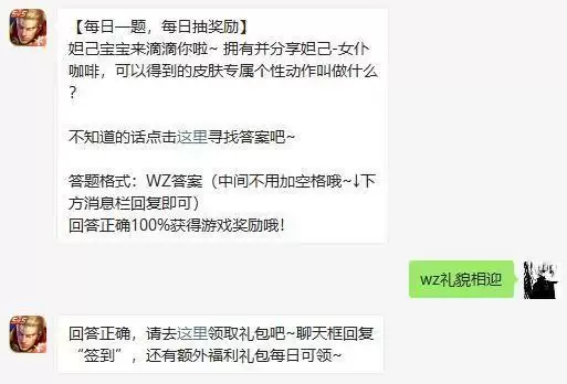 拥有并分享妲己-女仆咖啡,可以得到的皮肤专属个性动作叫做什么