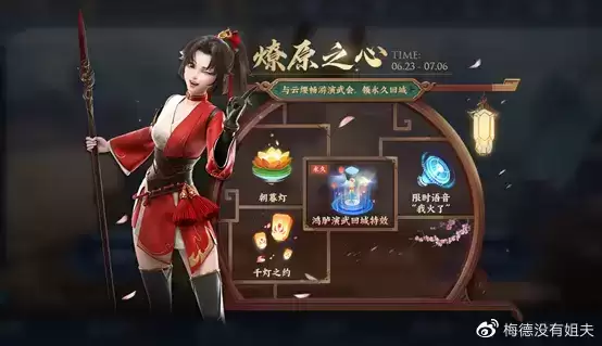 云缨对应活动燎原之心,在活动期间可通过登陆、进入界面点击云缨、与云缨同队竞技等方式获得默契值,并用其抽取永久回城特效、限时语音等奖励。活动时间为更新后到7月6号。