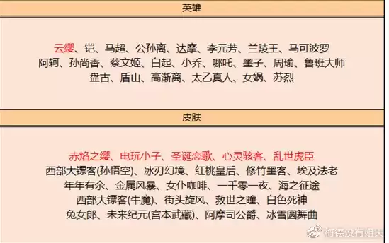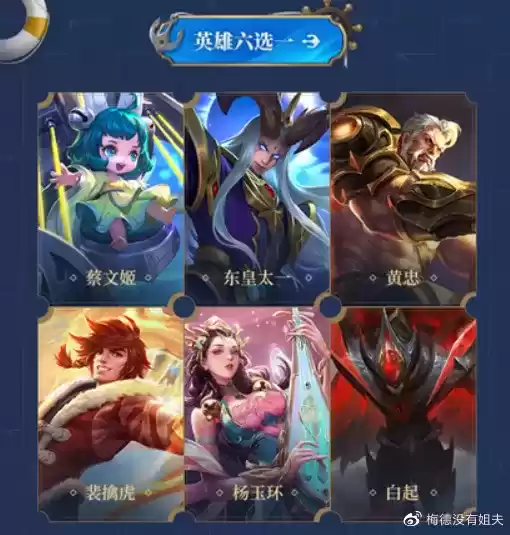 永久英雄则是替换成了蔡文姬、东皇太一、黄忠、裴擒虎、杨玉环、白起。