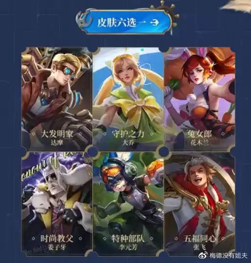 由于赛季进行了更新,因此对应的战令奖励也会做出调整。在s24赛季战令中永久皮肤六选一换成了达摩-大发明家、大乔-守护之力、花木兰-兔女郎、姜子牙-时尚教父、李元芳-特种部队、张飞-五福同心。