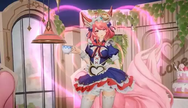 最后妲己拿着放了很多爱心的咖啡,身后也同时冒出来很多粉色的爱心光圈,在妲己的身后一圈一圈的荡漾着,仿佛妲己在倾听咖啡的心声,这也太用心了吧,如此有爱心的咖啡,任何人喝了都会感到陶醉吧。