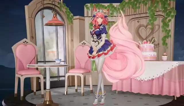 紧接着妲己就好像是美少女变身似的,穿着女仆制服,一个旋转身体,身后还有很多音乐符号出现,旁边还有很多小圆圈在一闪一闪的,而妲己的尾巴也跟随着妲己在挥舞旋转,非常柔软。