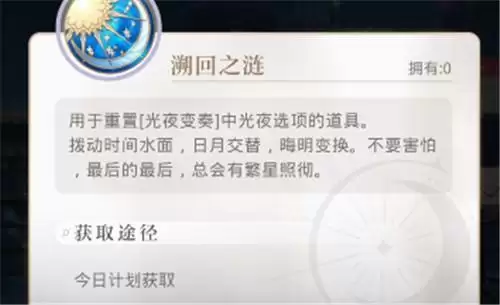溯回之涟是用于重置“光夜变奏”的道具,内测期间只能通过“今日计划”获取,公测后估计会加入某个氪金礼包内,或者商城的道具商店中出售,毕竟内测没有开放氪金渠道。