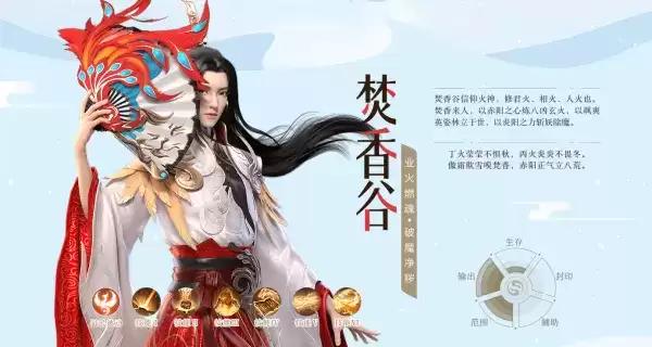 (1)火之魅影,被动提高人物物防,焚香的灵魂技能!俗话说的小火人,可以存在5回合,在大幅提高焚香的法爆后,这个技能正常情况下成为了焚香的起手招式,火之魅影可以放在场上第一排的任意位置。可以复制主人的所有伤害型门派技能。只要小火人存在场上,等于剩下4回合的所有技能都能连击(前提是人物可以出手)