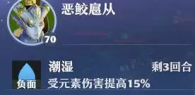 前排中间三个前几回合附带潮湿效果受到元素伤害提高15%。