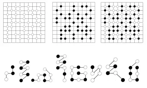 先将黑白棋子融合到同一棋盘中。