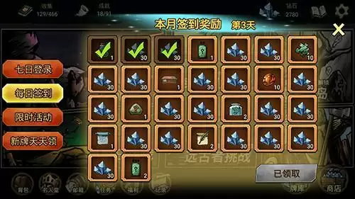 每日签到都可获得不同的道具钻石奖励,30天签到奖励更为丰厚。