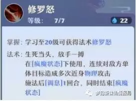 (7)修罗怒,被动不增加任何属性,鬼王的大招,单体集火4连击非死即残,是目前版本下最强的单体爆发技能没有之一。使用后清空疯魔啸,另外需要休息1回合,如果不是队伍集火能力不足,不要在开局就直接使用,不然等于要休息2回合!