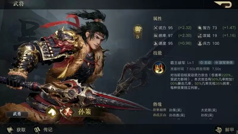 荣耀新三国手游孙策怎么样?游戏中的三国名将非常多,但很多小伙伴想要知道他厉不厉害,值得培养吗?下面是小编给大家带来的《荣耀新三国》手游孙策技能属性立绘图鉴分享,一起看看吧!
