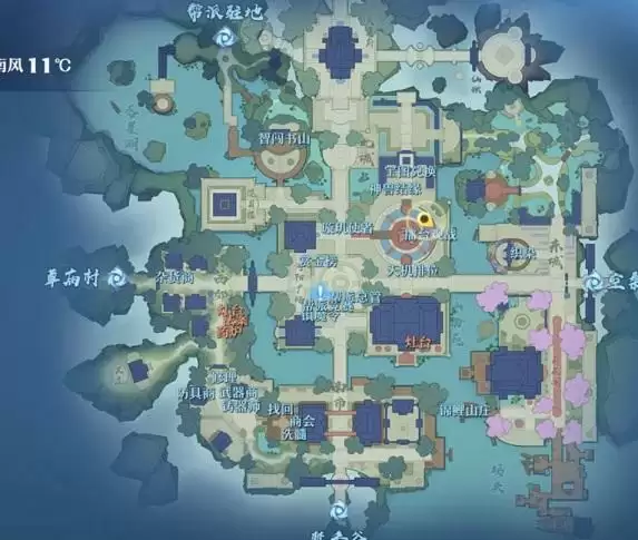 1、草庙村,这个探灵勇敢的阿瀚位置如下图所示,大家在完成第七个断剑上的博弈的时候可以找到。