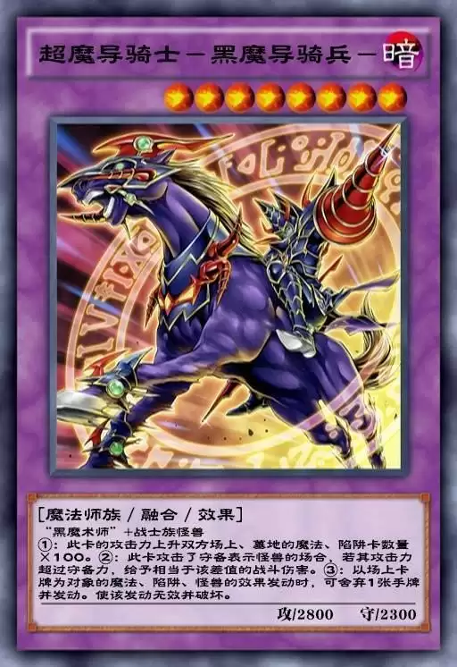 因为亚马逊体系的怪兽基本都是战士族,所以这套体系外 挂融合咒印生物来召唤超魔导真的是再适合不过了。在场上有亚马逊怪兽与融合咒印生物的时候,发动其效果可以直接召唤超魔导骑士来进行强攻,这张卡不仅有目前初代环境中相当吃香的穿防效果,同时也有通过舍弃一张手牌来miss对手魔陷或者怪兽效果的发动并破坏,作为整套卡组的终端大哥也保证了整套卡组的进攻,实用性还是相当不错的。