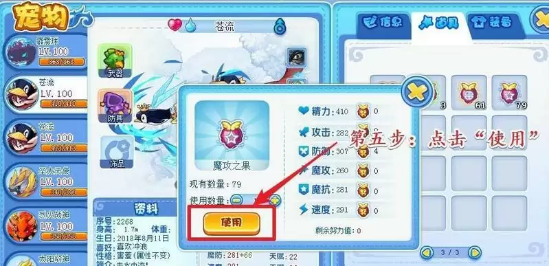 第四步:进入宠物道具界面以后,在道具列表中找到增加努力值的道具。