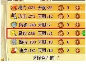 我们来看看下面两张图:当我们努力值增加到3点的时候,能力值依旧保持169不变。