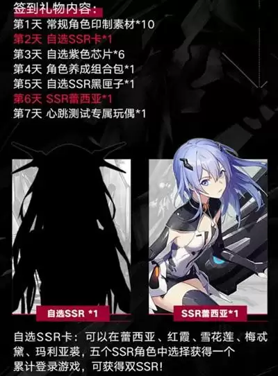 第二天的SSR自选箱,推荐选择蕾西亚、玛莉亚裘或者拳皇梅忒黛,手残党选择蕾西亚和玛莉亚裘,微操大佬可以选择拳皇梅忒黛,蕾西亚开服七天登录好礼会再赠送一个,升星比较容易点,但还是主要看抽奖抽到重复的,战力会提升快点。