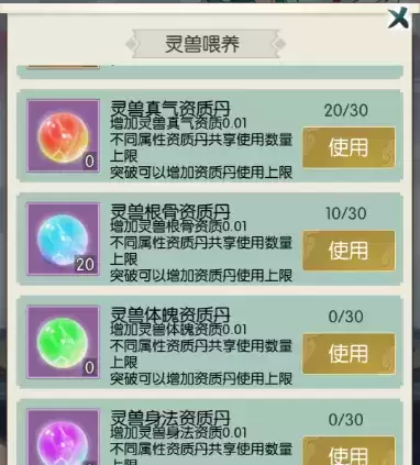 用除此之外,在灵兽修炼的过程当中,我们还可以进行灵兽培养,其中包括不同等级的妖丹,妖丹可给灵兽进行吞噬,从而获得大量的灵兽修为。