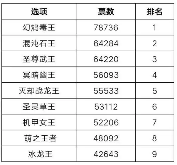 以上就是3DM小编整理带来的洛克王国精灵王复出投票结果2021,大家还喜欢吗?更多精彩内容,请点击关注3DM手游网,小编将持续为您更新!