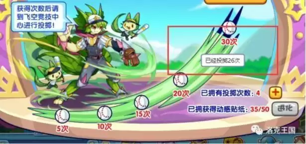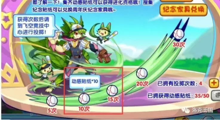在2021洛克王国十一周年【投出个好运】活动中,参与投掷,次数在第5次、第10次,第15次,第20次,第30次,可以获取动感贴纸,集齐动感贴纸可获得王牌灵猫进化资格,需要准备满级的魔力猫,且进化次数不限。