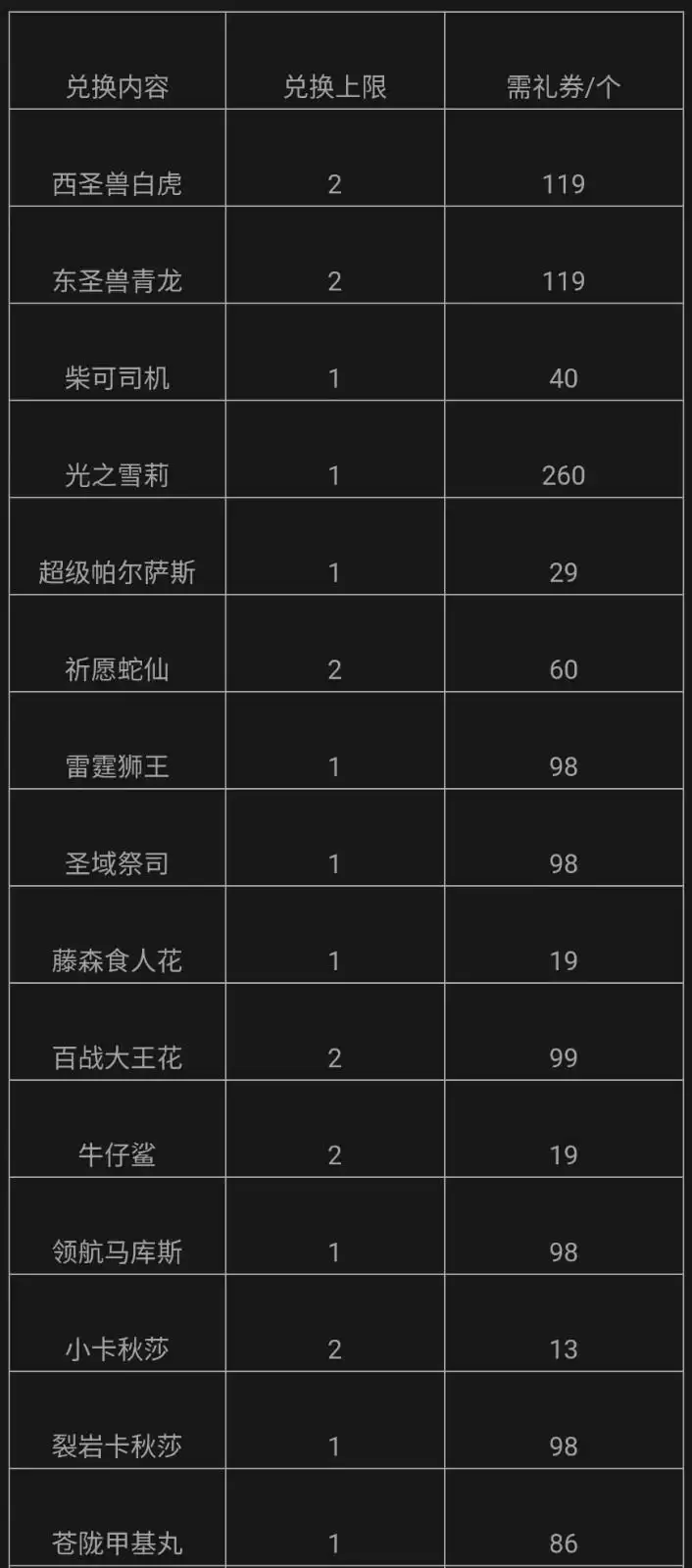第三个可以兑换的内容是宠物,如下所示: