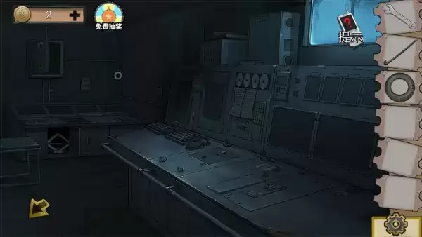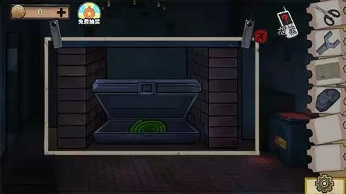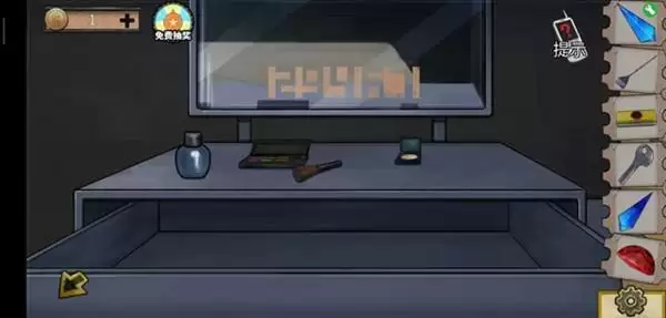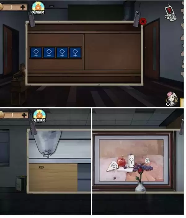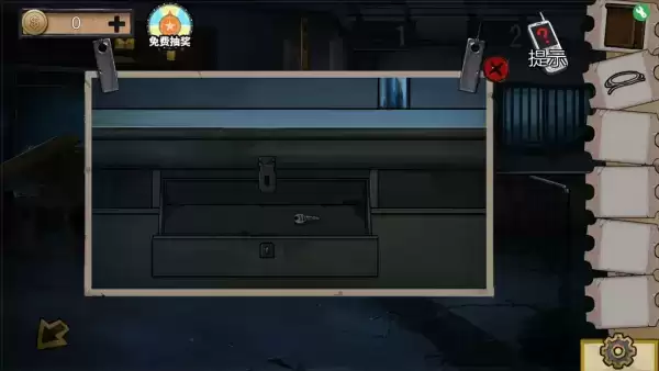 3、找到右侧机关,先点中间再点上面,打开得到警卫室抽屉钥匙。