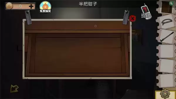 1、桌子上能拿圆珠笔,把它拆开得到笔芯去捅密码箱的钥匙孔,不需要密码。