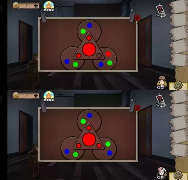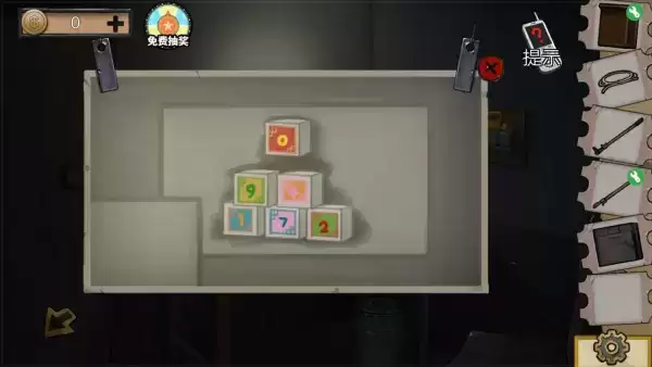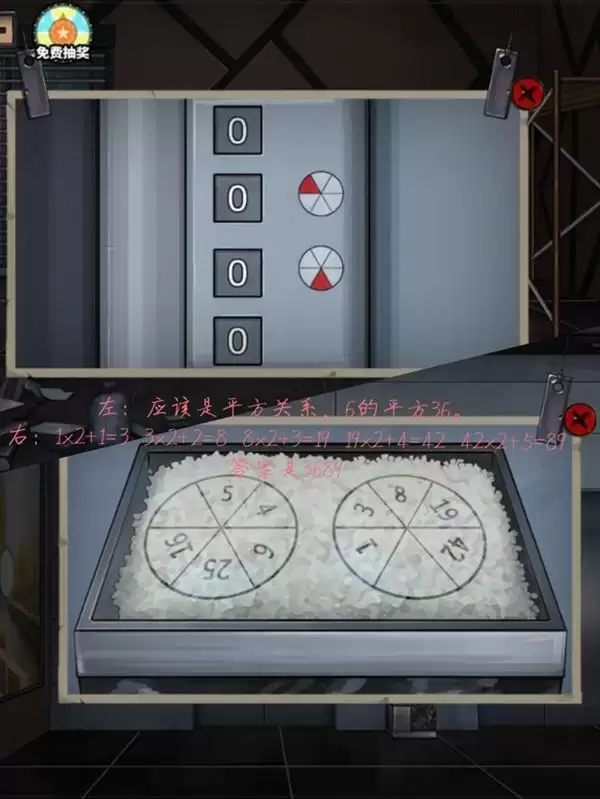 3、上边过完基本钥匙就有了,右边的钥匙可以开二楼左边房间,进去以后衣柜的谜题类似于会返头的贪吃蛇,会得到半个塑料片。