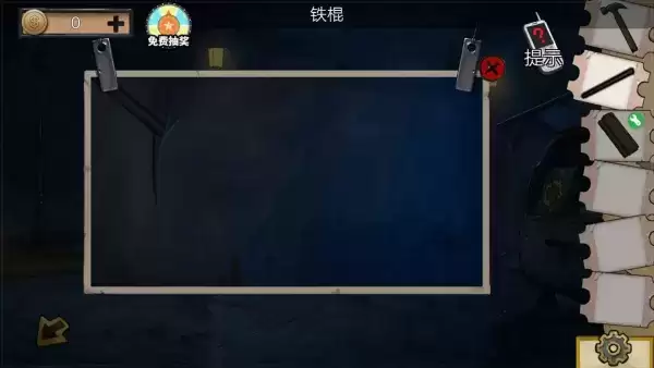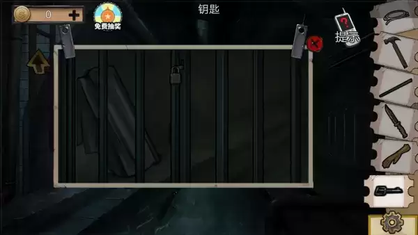 1、玩家用锯子锯门外的笼子,获得半把钥匙,点击地上的铁棍,获得铁棍。