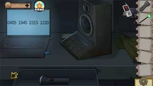5、电源适配器&U盘装在电脑上,获得密码,解开下方抽屉获得手电筒。