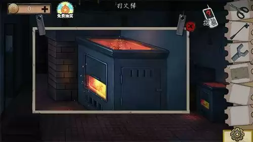 10、y型铁割开左侧沙发获得打火棒,门旁边的箱子打开 获得纸片,出房间 用打火棒点火炉。