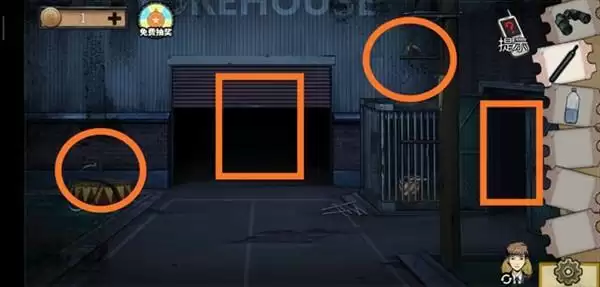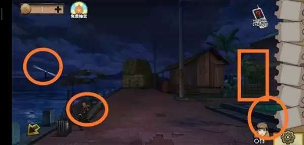 1、玩家通过下面几个图圈的位置找个几个道具,灯塔,红3绿5蓝3红4黄2,打火机处密码4275。
