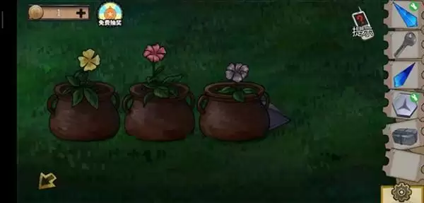 4、左边的钥匙可以开庭院的柜子,得到营养剂,给小黄花,得到半块塑料片组合。