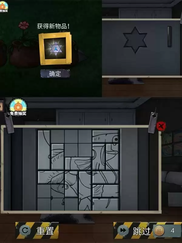 7、玻璃片割破它,拿钥匙,回来拼拼图。