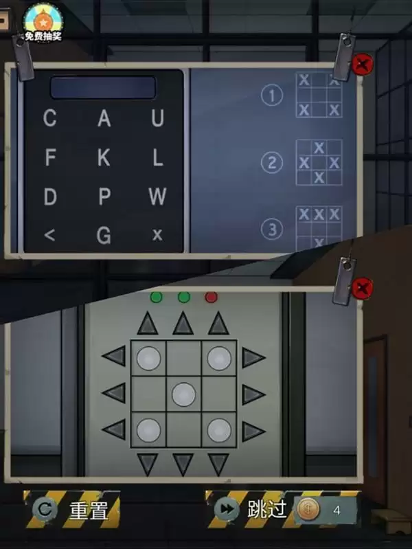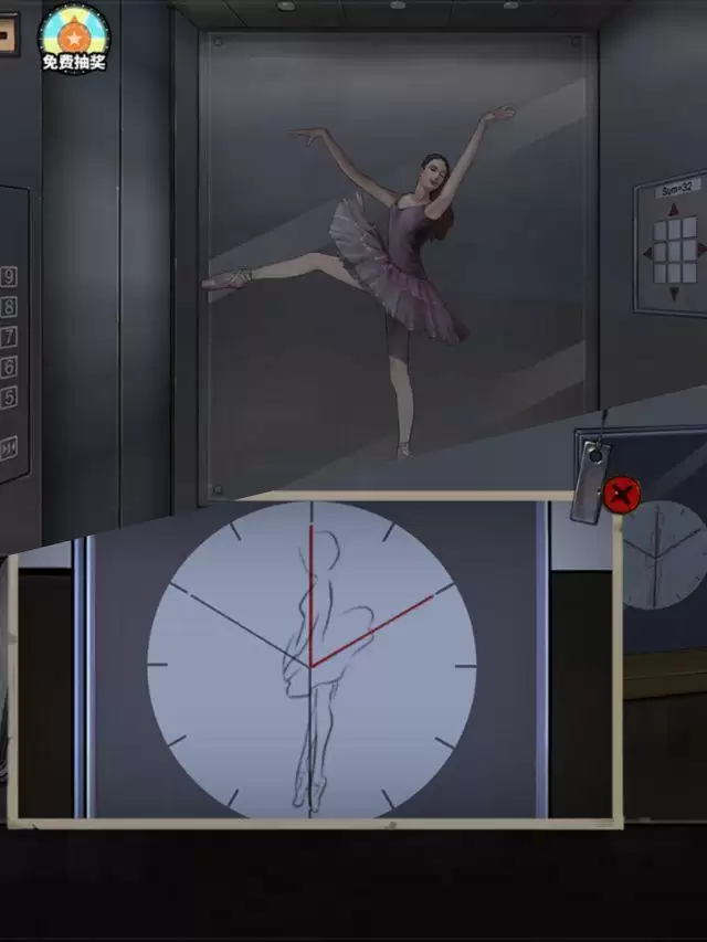 10、后面我需要密码,估计和电梯里面有关系,手和脚是可移动的,有一条腿是固定轴,根据图像,那么黑色线条应该就是代表腿,红色代表手,摆出姿势就可以了。