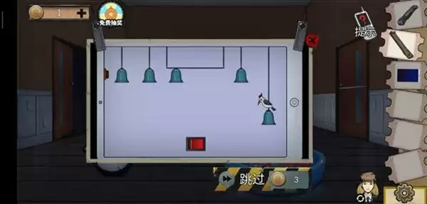 19、这个游戏主要是挪动中间那个铃铛,然后等啄木鸟到上方铃铛时按中间的红色按钮,快速导向另一边。